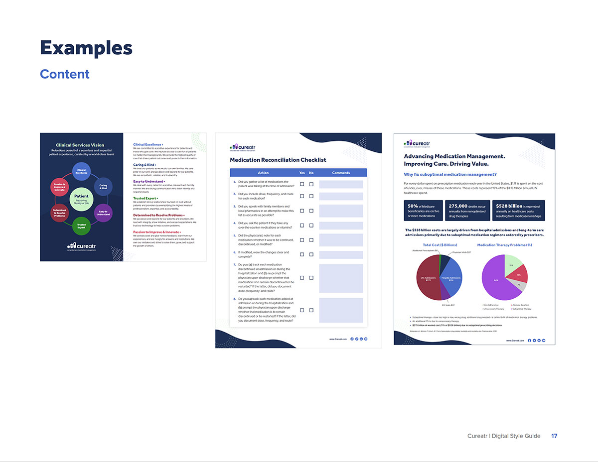 Persona research and development was vital, particularly for the new medication management solution. Generally targeting risk-bearing healthcare systems, Cureatr’s target audience includes chief medical information officers, chief medical officers, chief nursing officers, IT, security, and the clinicians who are typically using Cureatr’s technology.